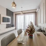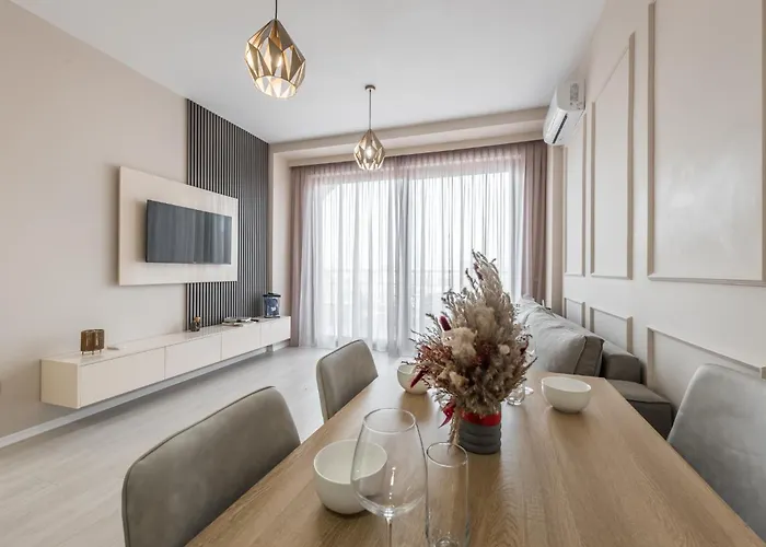 都市の景色を見渡す寝室1室のLuxurious Panoramic Apartment ティラナは、ジャーミア・エトヘム・ベウトから徒歩で10分以内です。 Bllokuとても近くに位置する75m²のアパートに宿泊すると、テラスでリラックスできます。
